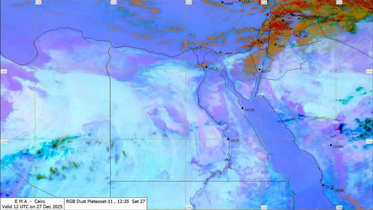 تشير أحدث البيانات الواردة من صور الأقمار الصناعية إلى استقرار كتل من السحب الممطرة فوق مناطق الشمال، حيث تشهد سواحلنا الشمالية الشرقية وجنوب الوجه البحري بالإضافة إلى مناطق واسعة من شمال سيناء حالة من عدم الاستقرار الجوي؛ وتتراوح شدة هذه التساقطات بين الخفيفة والمتوسطة مع استمرار تدفق الهواء البارد الذي يساعد في تكثيف تلك السحب ومنحها طابعا شتويا صريحا يمتد ليشمل السواحل الغربية أيضا؛ وهذا التطور في حالة الجو يضع احتمالات سقوط أمطار قائمة بقوة طوال الساعات المقبلة وبنسب متفاوتة تصل إلى 20 بالمئة في المناطق الداخلية ومنها القاهرة الكبرى التي تنتظر عبور هذه السحب.