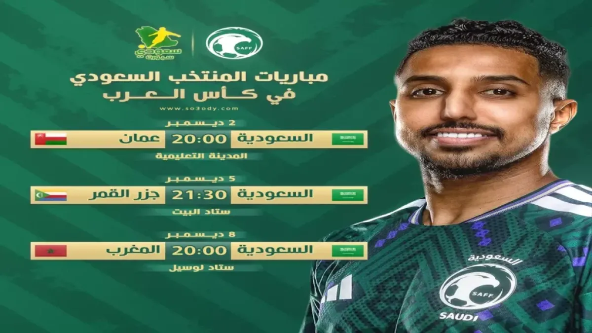 يترقب عشاق كرة القدم في الوطن العربي رحلة منتخب السعودية في بطولة كأس العرب 2025، حيث يواجه الأخضر منافسين شرسين ضمن دور المجموعات، ما بين منتخبات عمان، جزر القمر، والمغرب، مع إقامة المباريات على ملاعب قطر الحديثة. ويبدأ المنتخب السعودي مشواره بملاقاة منتخب عمان يوم الثلاثاء 2 ديسمبر على ملعب المدينة التعليمية عند الثامنة مساءً، وهو اختبار مهم يسعى خلاله إلى تحقيق بداية قوية تضمن له الأفضلية في مسار التأهل.