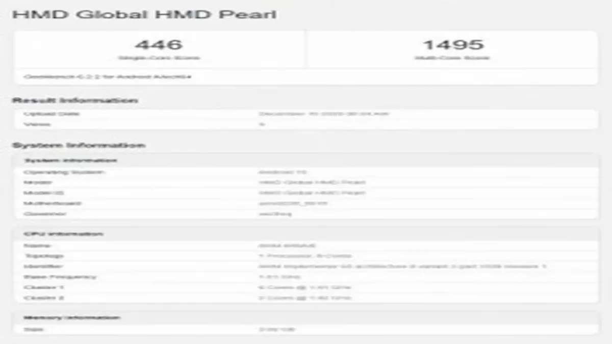 هاتف HMD Pearl بنظام Android 15 والمعالج Unisoc T7250 يبرز كمنافس قوي في السوق، خصوصًا مع توقعات بأداء متفوق مقارنة بهاتف HMD Pulse 2 Pro، الذي استخدم المعالج T606 سابقًا؛ حيث يظهر الهاتف الجديد بإمكانيات تثير اهتمام المتابعين لمواصفات الهواتف الحديثة. كشف ظهور الهاتف على منصة Geekbench عن تفاصيل تقنية مهمة حول الأداء والذاكرة التي يدمجها، مما يجعل HMD Pearl نموذجًا بارزًا ضمن أجهزة HMD الهاتفية.