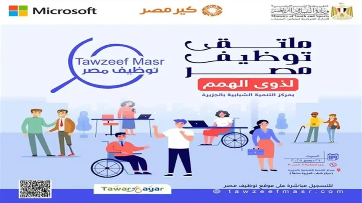 | السبت 27 ديسمبر 2025 | مركز التنمية الشبابية بالجزيرة | 8 صباحًا – 3 عصرًا |